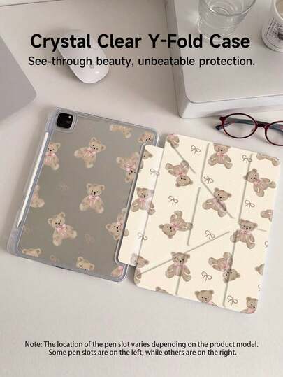 Funda de cristal acrílico con efecto pintado de oso de dibujos animados de doble cara para iPad de 10.ª generación, iPad 10.2/Mini6/Mini7/9.7 pulgadas/11 pulgadas, compatible con Samsung Galaxy Tab A9 Plus, Kindle (11.ª generación-lanzamiento de 2024), esquinas de silicona reforzadas, función de activación/suspensión automática, ranura para lápiz integrada, soporte plegable de varios ángulos - Multicolor - Ver 1