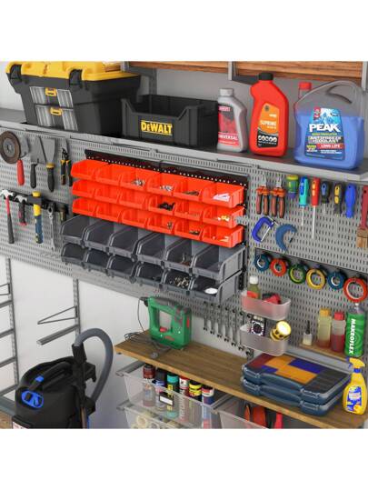 DURHAND Estantería de Almacenaje para Pared Organizador de Herramientas 33 Piezas en Total con Cajas de 2 Tamaños Diferentes Ideal para Tornillos 37,5x18x63 cm Rojo y Gris - Rojo - Ver 8