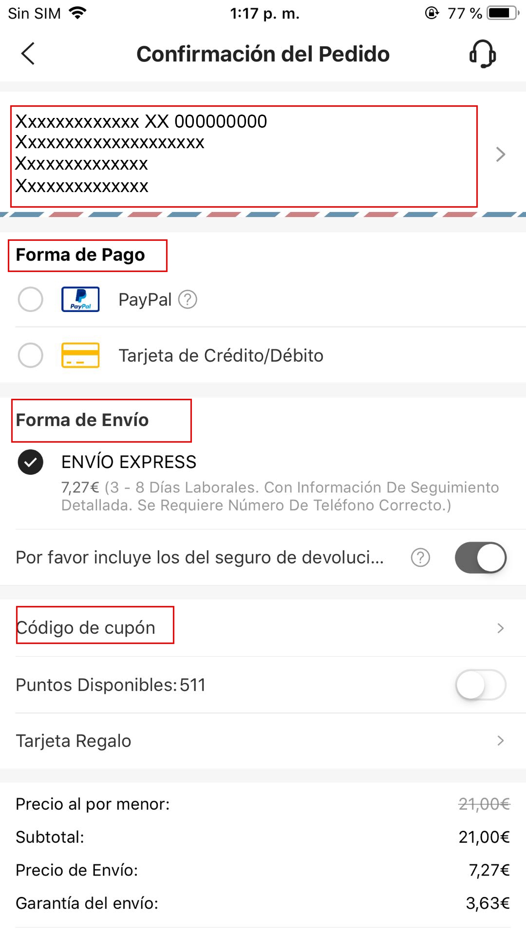 Rellene la dirección de envío;