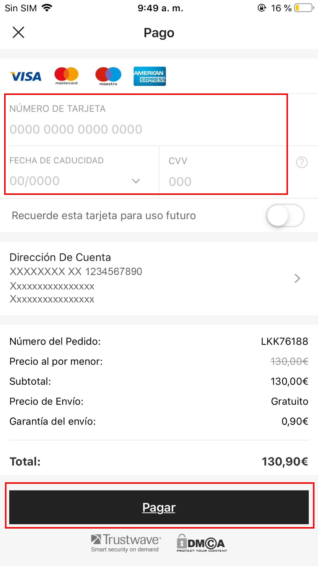 Rellene la información de pago y luego haga click en el botón PAGAR para completar la compra.