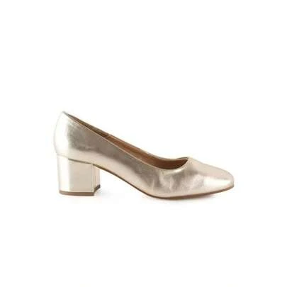 Zapato de salón de piel con tacón ancho plantilla Gel Hecho en España Tallas 35 a 40 Modelo 6600 Chamby - Plateado - Ver 1