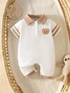 SHEIN Set de 2 piezas Mameluco casual con bloqueo de color y rayas para bebé, con cuello de solapa, botones y manga corta estampada