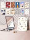 Espejo de maquillaje compacto plegable con diseño floral, ligero y portátil, conveniente para retoques, protección de cuero de calidad, diseño de sobremesa, adecuado para todas las ocasiones y personas, forma cuadrada plegable para un fácil transporte, patrones clásicos de flores, huevos, flores y animales lindos, diseño exquisito y único, estructura plegable duradera para un uso confiable, fácil de sostener y transportar