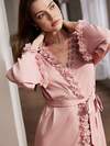 Côtesoire Bata de baño con ribete de encaje y cinturón para la cintura, ropa de estar en casa lujosa, detalles cálidos y elegantes para otoño e invierno