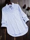 Camisa de primavera con botones, dobladillo plisado y ribete de contraste con estampado a cuadros