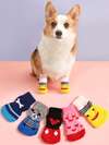 4 piezas Calcetines lindos para mascotas, incluye: Calcetines de pato amarillo, Calcetines antideslizantes para perros, Zapatos para perros, Protectores de patas de perro, Cubiertas para patas de perro, Cómodos y cálidos, Suministros para mascotas