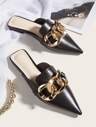 Zuecos planos con puntera de punta y detalles metálicos, otoño 2025