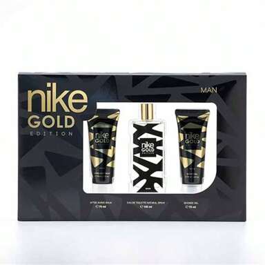 NIKE - Gold Edition, Colonia hombre, 100 ml, 200 ml, Estuche de regalo de 3 piezas, Eau de Toilette Natural y masculina, Aroma Cítrico Especiado, Fragancia Fresca, Elegante y de larga duración ? Entrega 24/72h