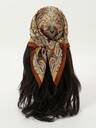 Un chal de mujer con bloques de color y tejido cruzado, una prenda de moda, versátil y suave