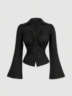 EURMUSE Set de 2 piezas con top de cárdigan acanalado sólido y pantalón de pijama campana suelta para mujeres