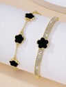 2pcs/Set: 1pc Pendant Necklace + 1pc Bracelet, Fashionable Minimalist Gold-Tone Clover Flower Ellipse Pendant, Copper Material, Suitable For Gift To Girlfriend, Wedding, Graduation, Date Valentines,Mom,Mother,Mother's Day,Gift