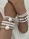 5pcs/Set Vintage Fashion Multi-Element Faux Pearl Elastic Beaded Devil's Eye Bracelet Set, Personalized Exaggerated Hipster Punk Multilayer Wristband Suitable For Men & Women, Daily Wear, Christmas, Valentine's Day Gift, All Season