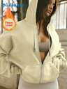 Solid Pocket Zip Up Thermal Lined Hoodie,Long Sleeve Tops Graduation,Back To School Outfits,Graduation,Teacher Outfits For Women,Back To School