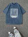 Men's Crew Neck Short Sleeve Commuting Casual Top, Vintage Racing Print Washed T-Shirt
