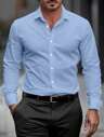 Manfinity Mode Men's Fashion Casual Business Commuting Men's Stand-Up Collar Solid Color Button Long Sleeve Shirt, Men's Formal Shirt, Men's Solid Color Shirt. Suitable For Daily Wear, Commuting To Work, Going Out, Party, Can Be Paired With Suit Pants Or Suit Suits To Attend Parties, Weddings, Honeymoon Scenes. Can Be Given As A Gift To Sons, Husbands, Boyfriends, Fathers, For Fall, Old Money Style