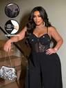 NU&NOW Plus-Size Women's Sexy Scoop-Neck Long-Sleeve New Year Party Jumpsuit