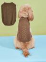 1pc Solid Color Minimalist Cable Knit Vintage Twist High Neck Pet Sweater For Large Dogs, Golden Retriever, Poodle