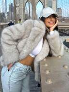 Women's Faux Fur Lapel Collar Long Shaggy Casual Jacket