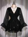 SHEIN ICON Plus Size Sequin V-Neck Ruched A-Line Dress, Boho, Hippie, Y2K, Party Dress, Suitable For Autumn, Summer Vacation, Music Festivals, Graduation & Back To School Season Black Sparkle Dress Black Glitter Dress