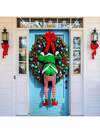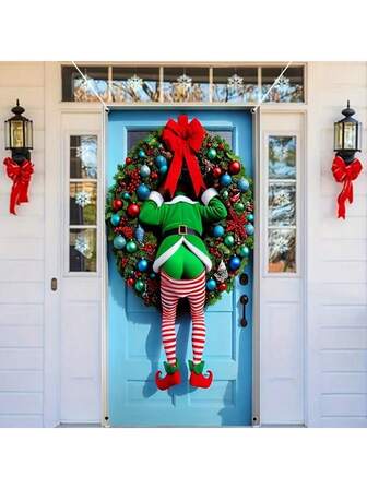 1pc, Polyester, Merry Christmas Funny Elf House Door Cover Hanging Indoor Flag Banner Home Indoor Outdoor Party Decorations Christmas Backdrop Tapestry, Entrance Room Garden Courtyard Gate Decoration 35.43 X 70.86 Inch Holiday Party Supplies