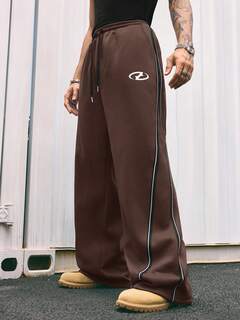Men's Letter Print Crew Neck Sweatshirt, Loose Fit, Warm Lining, Long Sleeve For Autumn/Winter