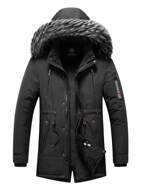 Men Slant Pocket Drawstring Hooded Padded Coat, For Fall Winter