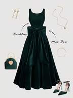 GlowEve Women's Velvet Crew Neck Gold Embroidered Waist Fitted A-Line Elegant Everyday Commute Fashion French Street Vintage Versatile Christmas Party New Year Holiday Business Formal Long Sleeve Dress, Burgundy, Autumn/Winter