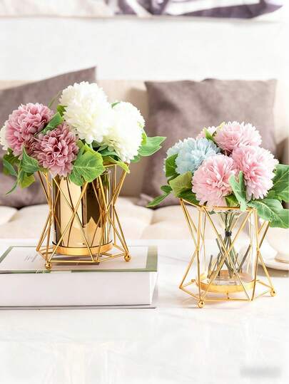 1pc Nordic Style Iron & Glass Flower Vase, Hydroponic Planter, Home Decor For Living Room, Dining Room, Bedroom, Office, Tabletop Candle Holder, Elegant Gift - Multicolor - View 11