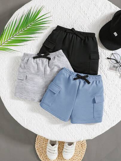 SHEIN Leap Crew 3pcs/Set Baby Boy Casual Colorblock Decor Elastic Waist Shorts, Summer - Multicolor - View 5