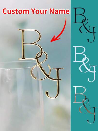 5-50Pcs Personalised Drink Stirrers, Drink Tags, Customizable Initials Heart Wedding Wine Charm, Customized Glass Markers, Laser Acrylic Cocktail Champagne Charms Decoration, 7.2x5.1cm, Black/White/Gold Mirror/Sliver Mirror, Multi-Functional, Ornamental Exquisite, Colorful, Vintage Custom, Personalized, Mother's Day Gift, Multi-Functional, Reusable, Ornamental, Exquisite, Adorable, Colorful, Cute, Funny, Custom, Personalized, Customized, Unique, Ideal Gifts For Her, Ideal Gifts For Him, For Anniversaries, For Birthdays, Teenager Novelty & Gag Toys - Style a - View 1