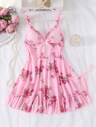1pc Lace Trimmed Bowknot Front Slit Hem Cami Nightgown