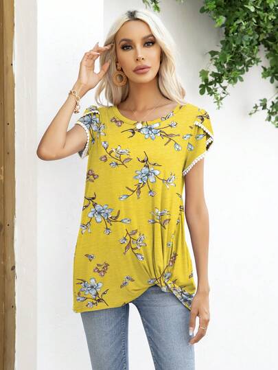 DEARCASE Floral Print Petal Sleeve Tee - Multicolor - View 1