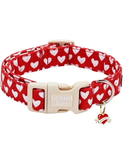 Lionheart Glory Valentine's Day Dog Collar, Red Heart Shaped Soft Adjustable Dog Collar, Suitable For Cute Male And Female Dogs, Spring Pet Party Holiday Collar - Red and White - View 1