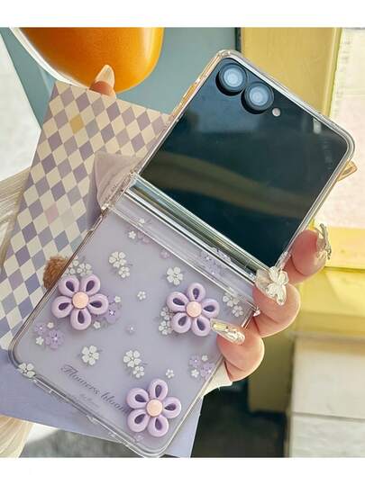 Lovely 3D Purple Flower Hinge Protection Phone Case Compatible With Samsung Galaxy Z Flip7 Fashion Floral Shockproof Back Cover - Flowers - View 1