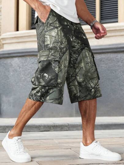 Manfinity LEGND Men's Streetwear Style Dead Tree Print Cargo Shorts,Dried Tree Print Workers' Pants For Men, Suitable For Clothes That Are Cool To Wear On The Street,For Friends, Husband, Boyfriend Gifts - Multicolor - View 1