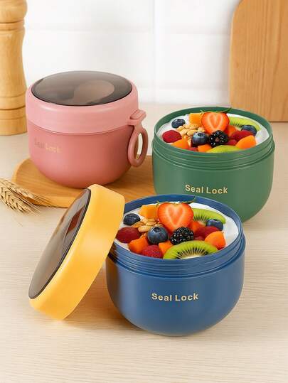Portable Oatmeal Container, Bento Box, Lunch Box With Lid And Spoon, Breakfast Cup, Salad Cup, Smoothie Cup, Diet Cup, Lunch Bag Set, Reusable Breakfast Cup, Suitable For Fruit, Pudding, Cereal, Milk, Soup, Great For Home Kitchen, School, Office, Travel And Outdoor Picnic - Multicolor - View 1