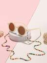 1 PC Acrylic Vintage Oval Frame Fashion Glasses For Teenagers Aged 12-16 And 1 Acrylic Loop Glasses Chain, Suitable For Matching Outfits