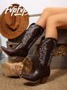 FVPFVP Fashionable Embroidered Vintage Chunky High Heel Cowboy Boots