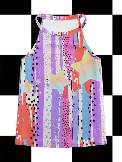 Shutterstock Women's Silver Millennium Y2K Metallic Star & Letter Digital Print Halter Neck Party Top Printed Top Graphic Top Star Print Top Multicolor Top - Purple - View 1