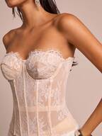Soleia Sexy Off-The-Shoulder Lace Double-Layer Fitted Corset Bustier Top, Hollow-Out Embroidered Bodysuit, Suitable For Nightclub, Wedding Guest, Fall