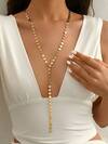 High Repeat Customers1pc Fashionable Minimalist Square Block Luxurious High-End Elegant Exquisite Creative Versatile Extra Long Snake Chain Y-Shaped Adjustable Necklace, Suitable For Women For Parties, Romantic Vacations, Dates With Friends, Fashion Shows, Bars, Travels, Daily Office Commute, Vacations, Dancing, Beach Wear