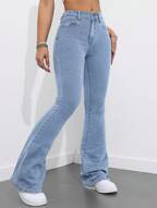 SHEIN ChillGRL Tween Girls Casual Fashion Light Blue Denim Color Butterfly Print Loose Wide Leg Relaxed Fit Comfortable Daily Versatile School Casual Washed Denim Pants Girls Jeans With Bows Wide Leg Jeans With Bows Girls Wide Leg Jeans Jeans With Bow Detail Fall Winter