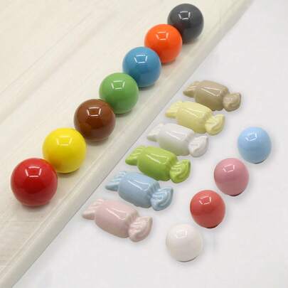 5 pièces Boutons de meuble en céramique style dessin animé, boutons de meuble ronds et colorés style bonbon pour cuisine, chambre d'enfant, tiroirs de commode, convient pour bureau, tiroirs de cuisine, placard de chambre, armoire, salle de bain - Multicolore - Voir 10