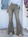 Jeans évasés vintage stretch pour femmes, boutons décontractés, poches, ourlet brut, déchiré, taille haute, jambes évasées, très long, noir, coupe ajustée, printemps/automne, pour un port quotidien décontracté