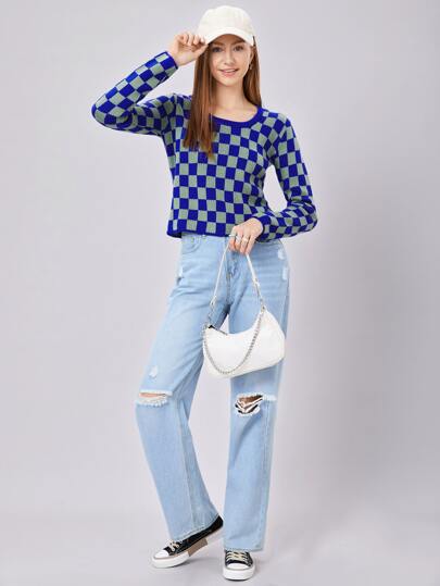 Review: Pull à damiers très jolis court et chaud pour l’automne je recommande sans hésitation 👍😊