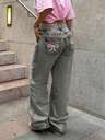 2025 Nouveaux jeans maxi droits à jambe large avec strass, style mode européen et américain pour femmes