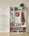 VASAGLE Porte-Manteau avec Banc à Chaussures, Meuble d'Entrée, Étagères Réglables, 20 Compartiments, 6 Crochets, Autoportant, pour Entrée, Couloir, Blanc Nuage