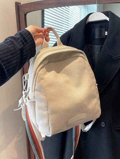 Sac à dos décontracté à la mode en velours côtelé de couleur unie léger et portable, sac pour femme à double usage avec bandoulière colorée pour les étudiants Sac à dos scolaire pour les étudiants parfait pour l'université, les affaires, le travail, les déplacements, la rentrée scolaireSac à dos scolaire, sac d'école, sac à dos pour l'école, le dos À l'école, grand sac à dos, classique décontracté, adapté aux adolescentes, femmes, étudiantes, parfait pour la rentrée scolaire, l'université, le collège, le lycée - Beige - Voir 1