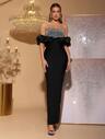 Nouvelle robe moulante sexy noire à manches longues et épaules dénudées, décorée de perles et de diamants faits main. Robe de demoiselle d'honneur élégante, idéale pour les fêtes d'anniversaire, les soirées de gala et les occasions formelles pour femmes.