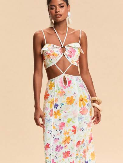 Travachic Robe moulante femme avec motif tissé et design découpé - Multicolore - Voir 1